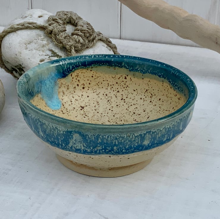 This beautiful little bowl is perfect for rings, trinkets or as a display piece. It has been wheel-thrown using stoneware clay and hand glazed with a combination of Winter Wood and Shipwreck glazes. The flow of