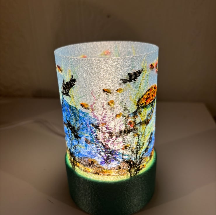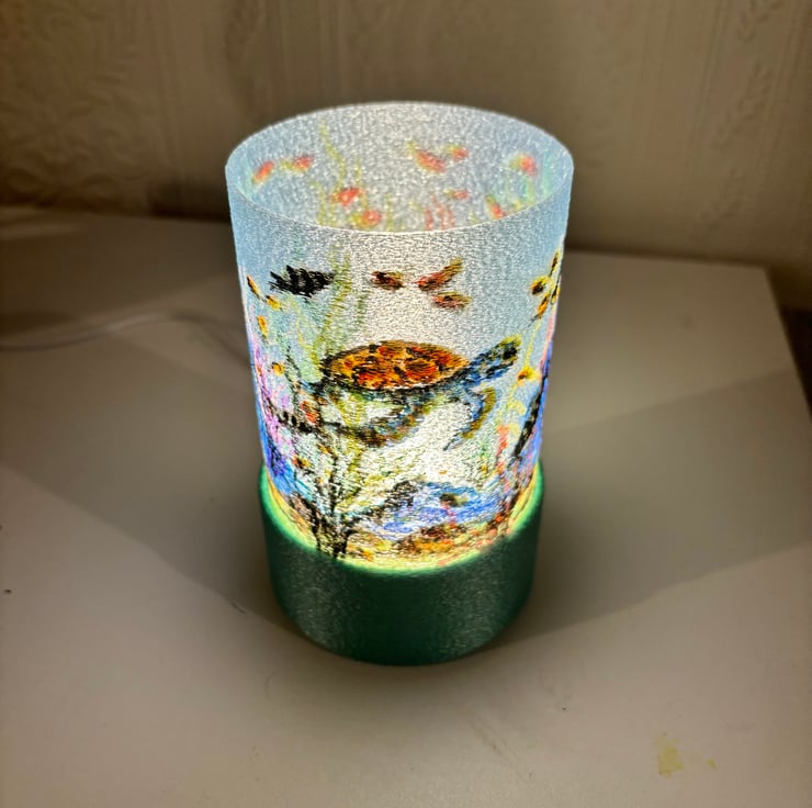 A hand painted and sealed sea turtle usb lamp by Andrew Jenkins