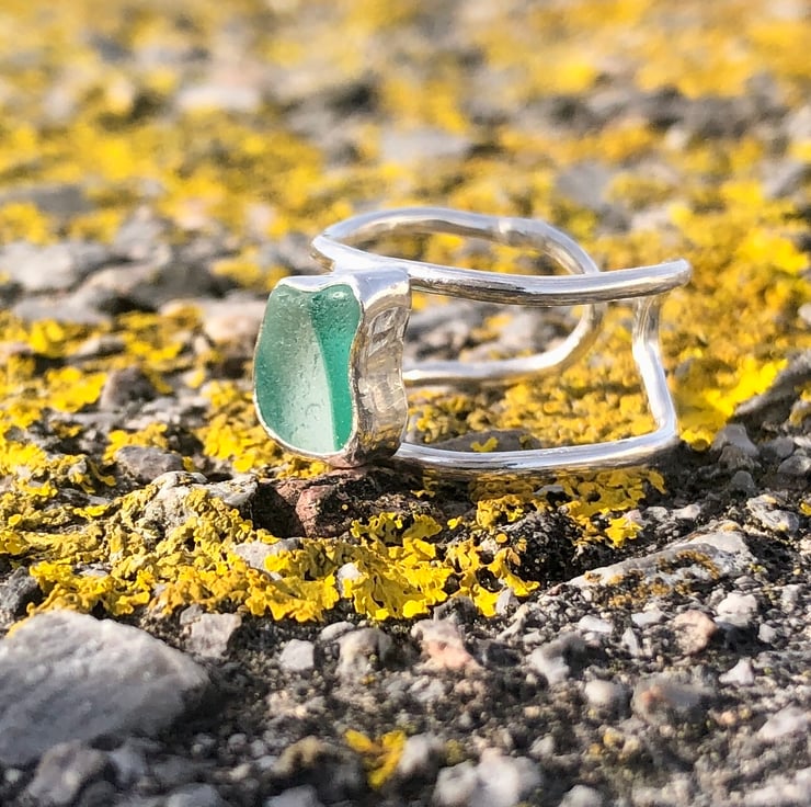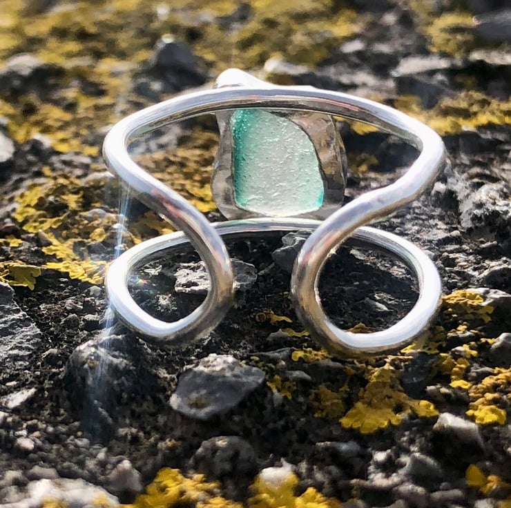 Sage Green Statement Sea Glass and Sterling Silver Ring- Adjustable  - 1309
