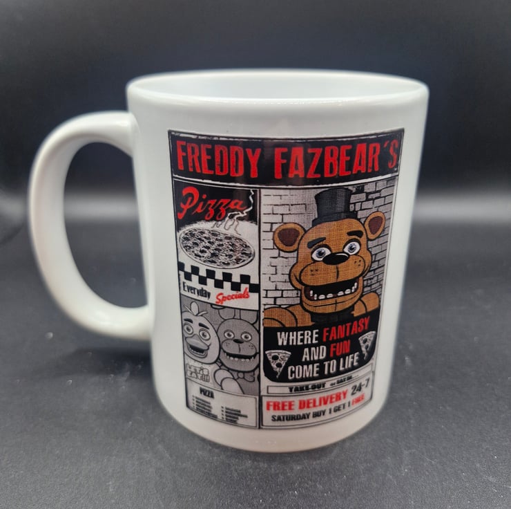 New FNAF Mug Five Nights at Freddy's Pizza Horror Movie Gaming Fan Art