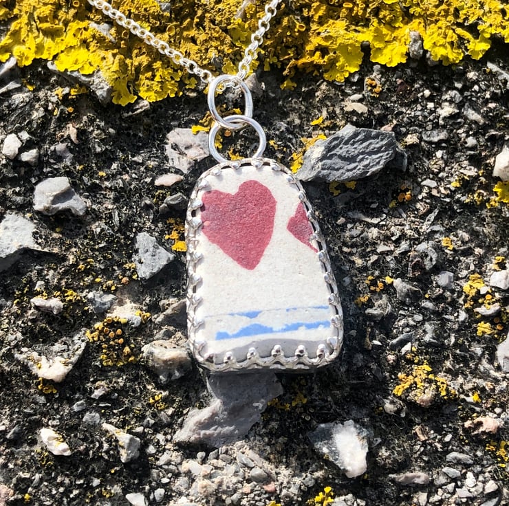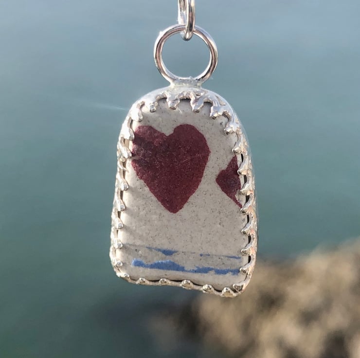 This one of a kind piece of sea pottery featuring a perfect love heart was found along the UK's South West coastline and has been set in a fine silver bezel (.999) and backed using recycled (ecosilver) sterling silver (.925) to create a beautifully unique pendant.