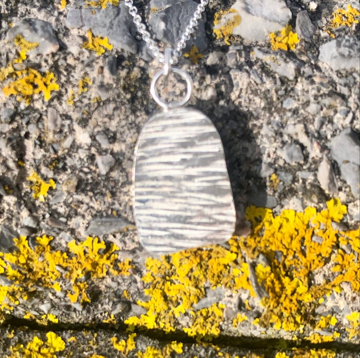 The back of the pendant has been hammered to give a textured look and feel, making this a true one of piece of sea inspired jewellery. This piece has not been hallmarked.