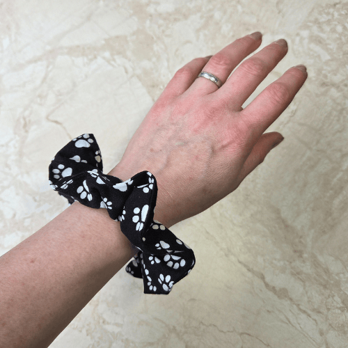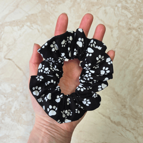Made by Carey using a soft black cotton fabric with white paw prints in the fabric. Ideal for any animal lover or gift.