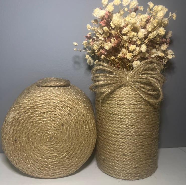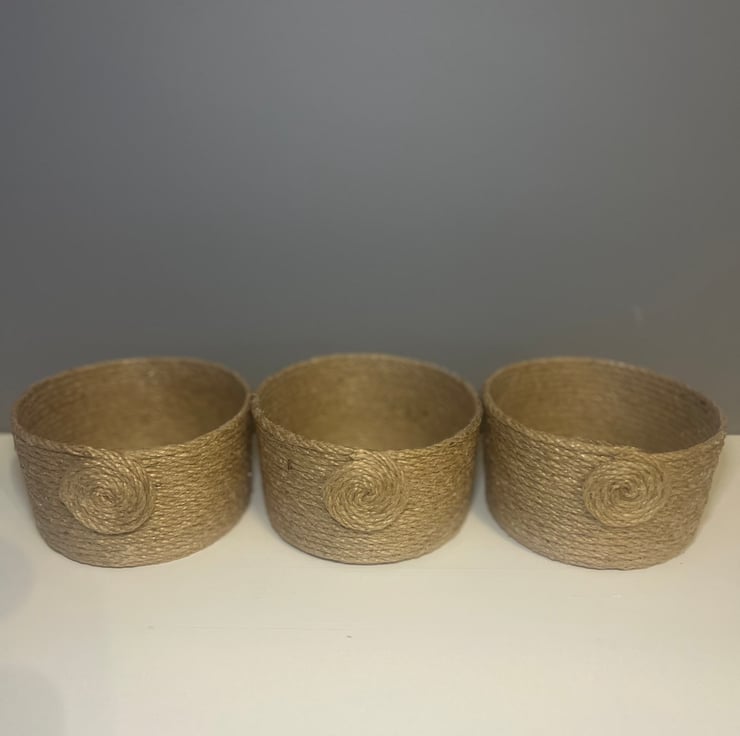 Add natural texture and practical charm to your home with these handmade rustic twine storage pots. Carefully wrapped in durable jute twine and finished with decorative spiral detailing, these small organisers are perfect for stylish everyday storage.