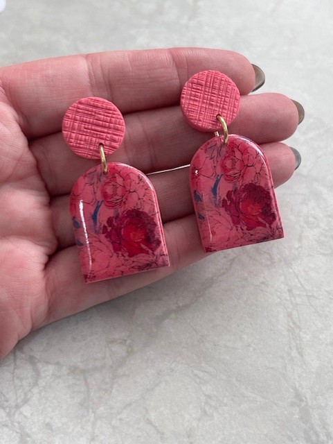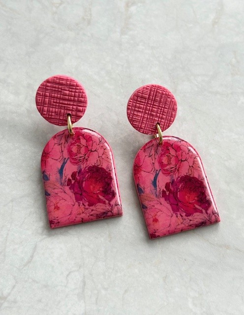 Handmade Polymer Clay Arch Drop Earrings – Pink Floral Design