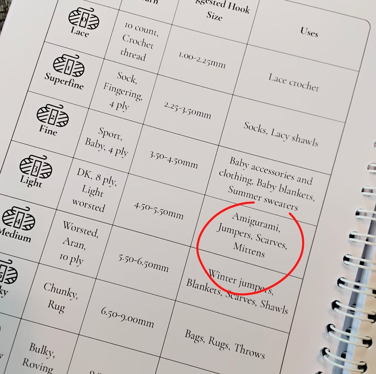 Yarn weights guide.