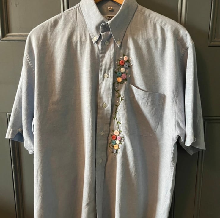 -Condition: Handmade embroidery on a pre-loved or classic shirt