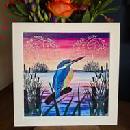 Sunset Fishing Handmade Blank Greetings Card