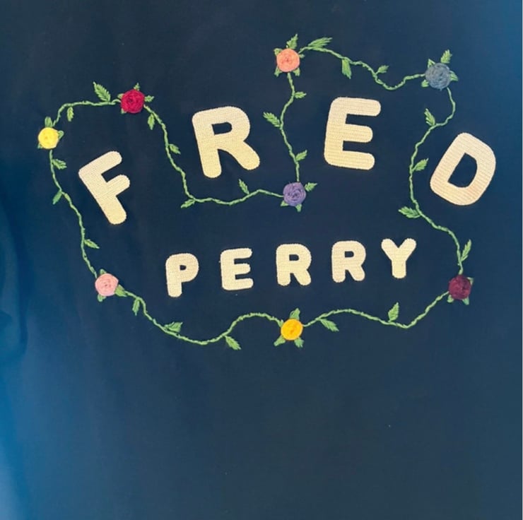 Add a touch of handmade charm to a classic wardrobe staple. This black Fred Perry T-shirt has been lovingly decorated with original hand-sewn floral embroidery—roses on the vine—around the iconic logo. Each stitch is done by me, making this a one-of-a-kind piece full of character and artisanal flair.