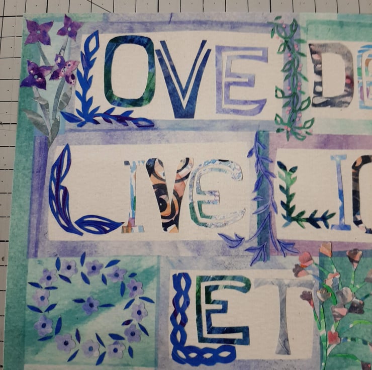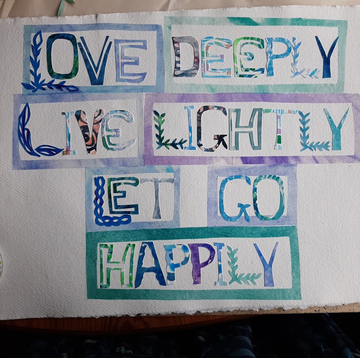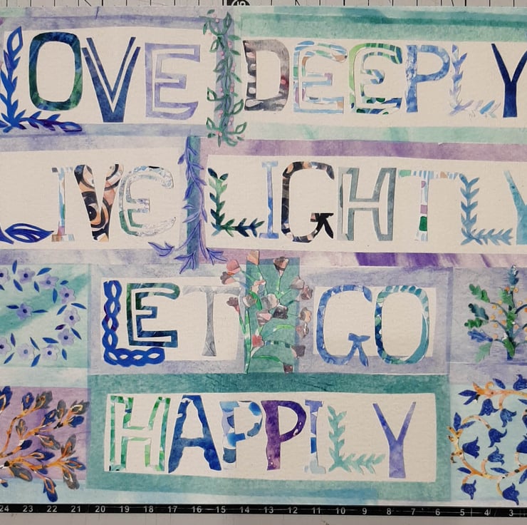 This sale is for one sample print of my Love Deeply, Live Lightly, Let Go Happily paper collage.