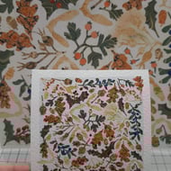 The photos show the sample for sale, including size. The last 4 images are from my original work in progress, showing some details before the background colour was added using coloured deli paper which is translucent. The final image became my business card.