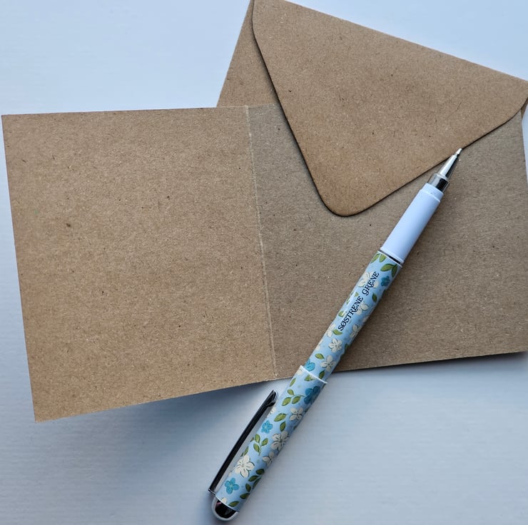 Size 4x4 (approx 10cm x 10cm) Supplied with square kraft envelope and blank inside.