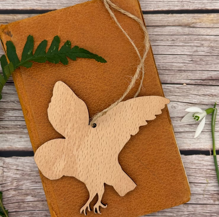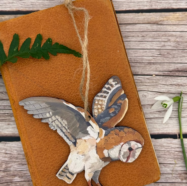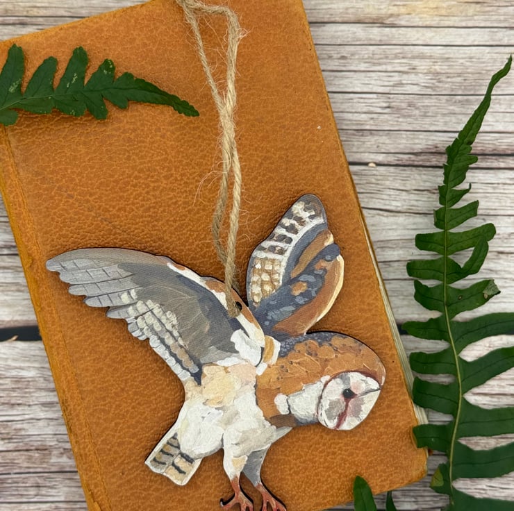 Wooden Barn Owl Decoration - uv printed and laser cut owl from my original artwork