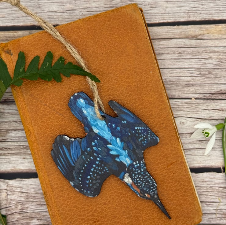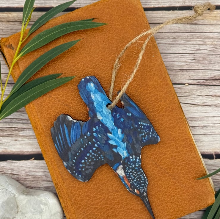 Wooden Kingfisher Decoration - uv printed and laser cut owl from my original artwork