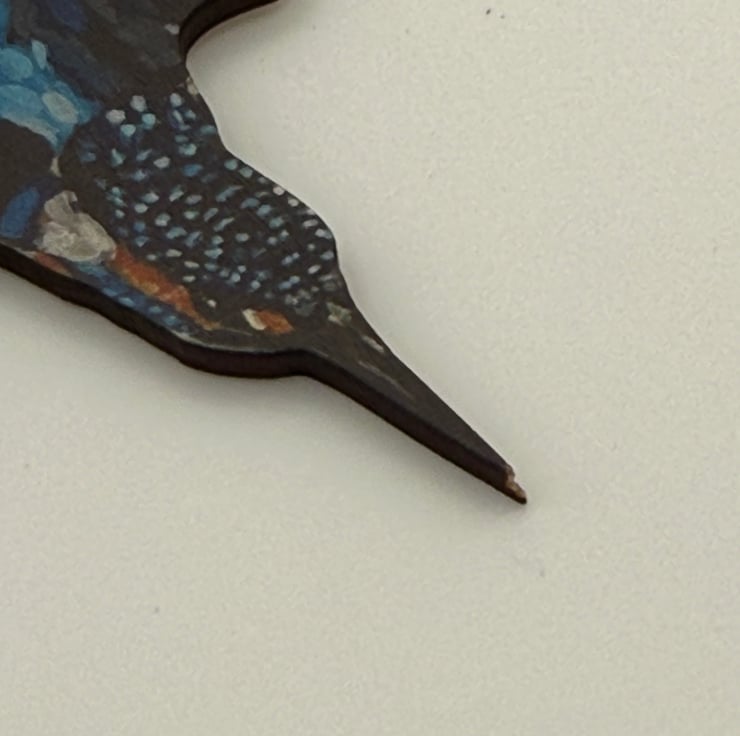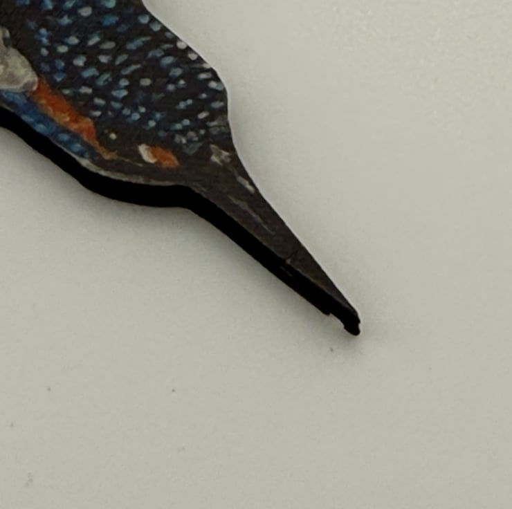 Almost perfect, this Kingfisher decoration has a small cut/chip on the beak. Only noticeable on close inspection. Doesn’t detract from the overall look of this item. Images show this imperfection.