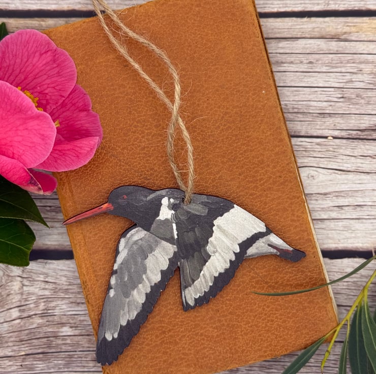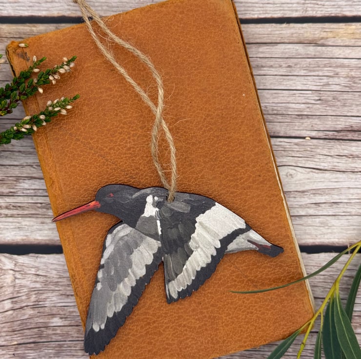 Wooden Oystercatcher Decoration - uv printed and laser cut owl from my original artwork
