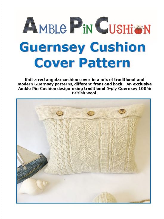 Our exclusive Guernsey Cushion Cover Kit is knitted in a mix of traditional and modern Guernsey stitches, which even includes Amble’s Freddie the Dolphin on the back. It is the ideal introductory product for those who are new to this style of heritage knitting. The cushion cover uses 5-ply Guernsey 100% British wool available in natural, navy, red or Helford blue. Please state your colour choice when booking. Kit cost includes pattern, yarn, wooden buttons and a 16” x 12” feather cushion pad. You will also need 2.75mm knitting pins, a cable needle and a wool needle for sewing up.