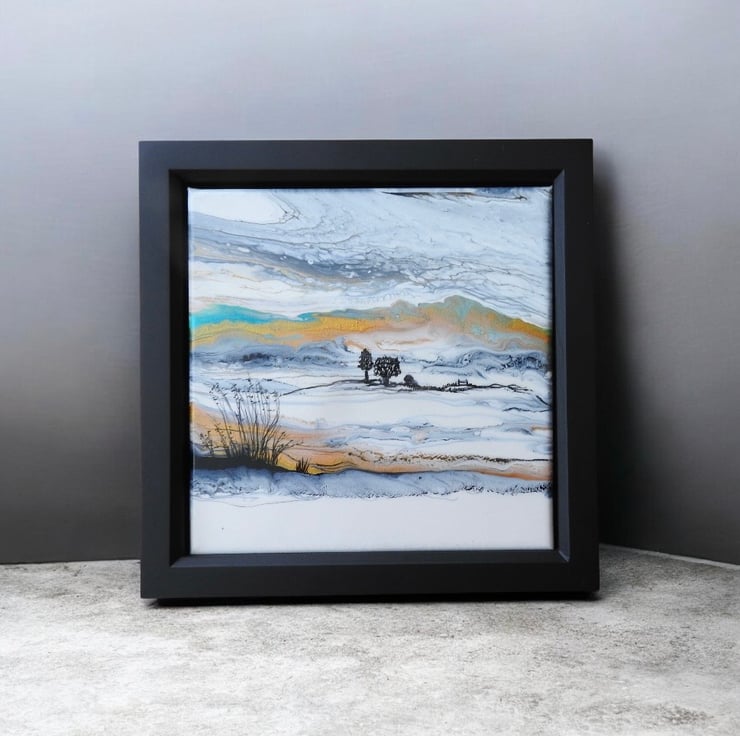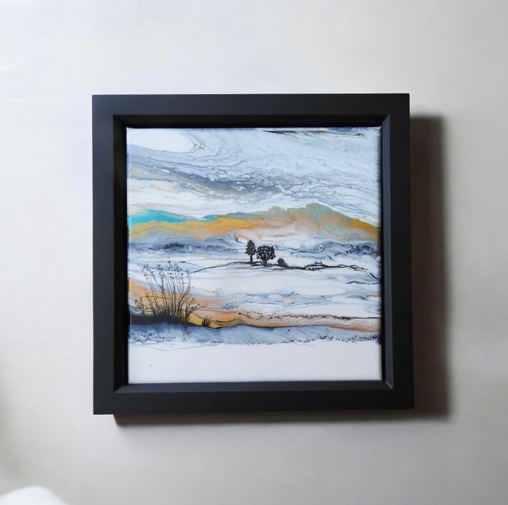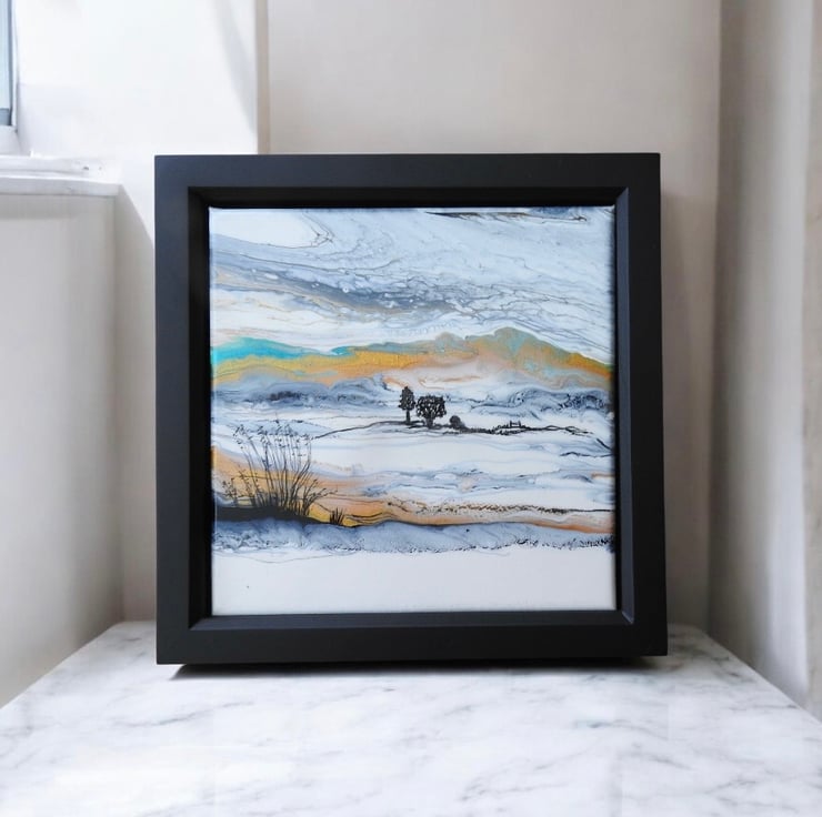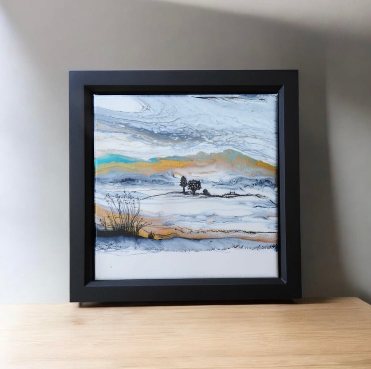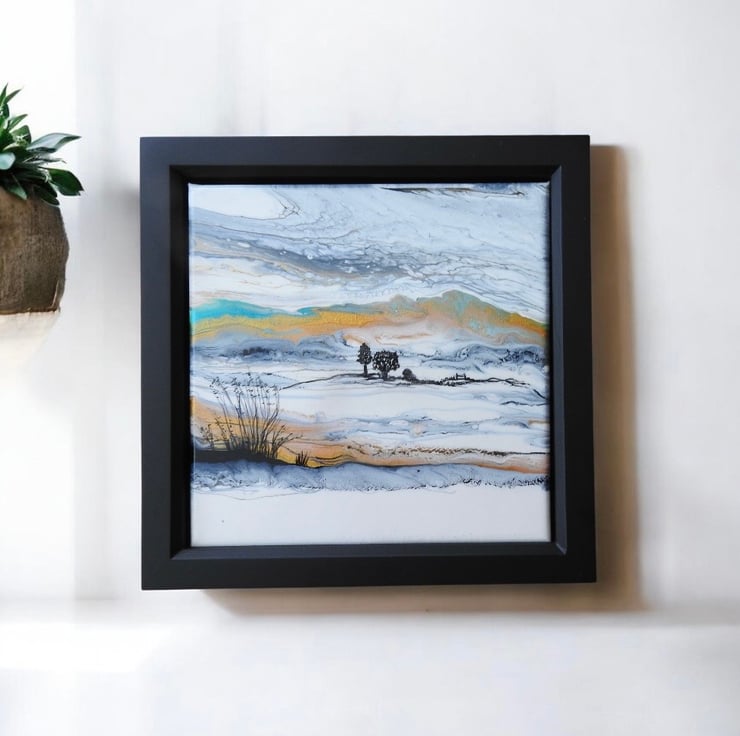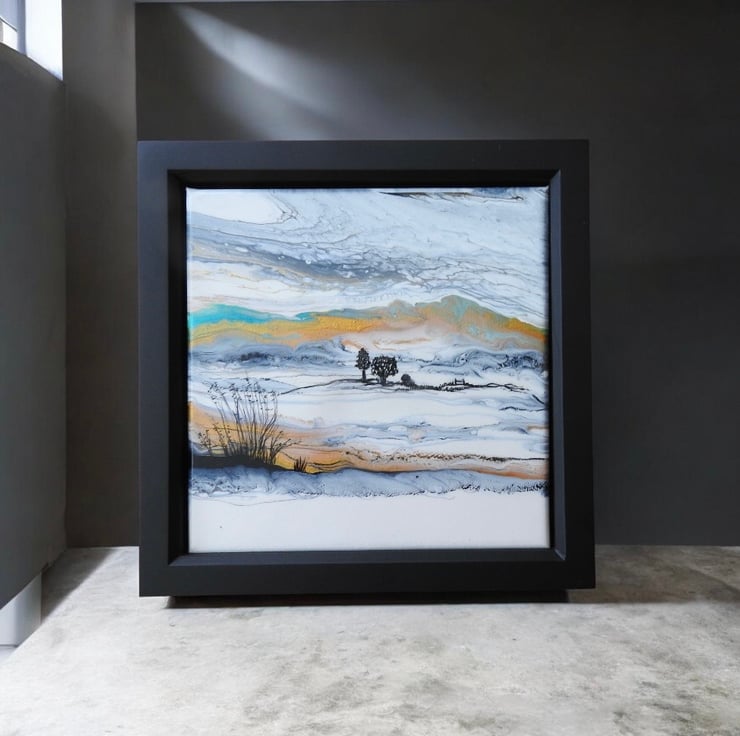 A framed canvas . Canvas measures 20 cm x 20 cm framed 25 cm square