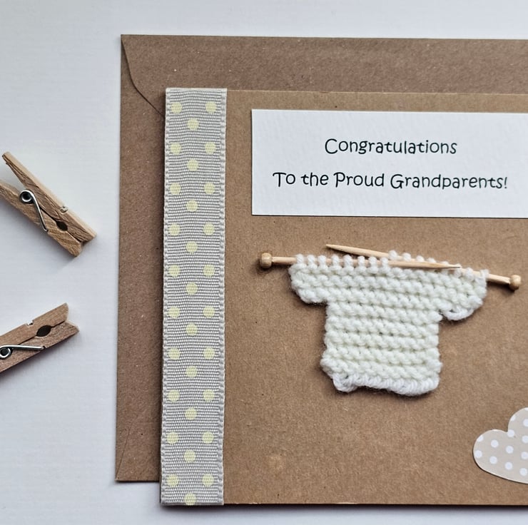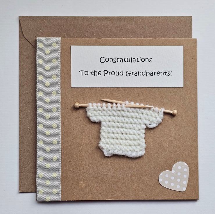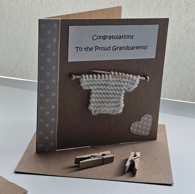 New Grandchild Grandparents Card with little Knitted Jumper Seconds