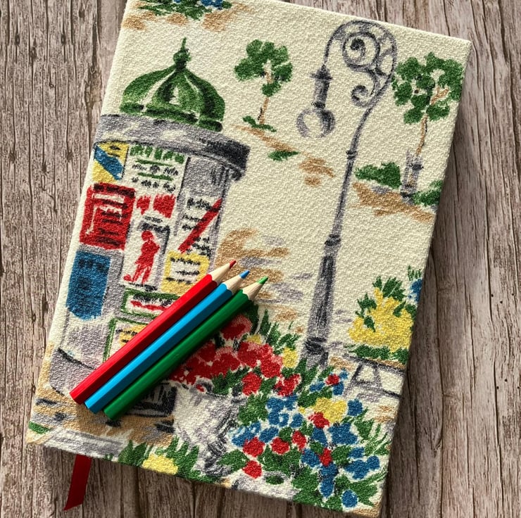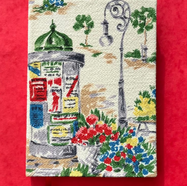 Handbound A5 1950's Vintage Barkcloth Sketchbook, Journal, Paris, Spring, Red