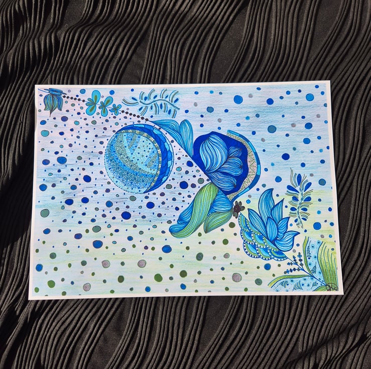 This print design has a special place in my heart as it is the first piece I ever created on my art journey. I realised these colours were my favourite to work with, as further into my journey I started using them more and the blue & green pens would always run out first!