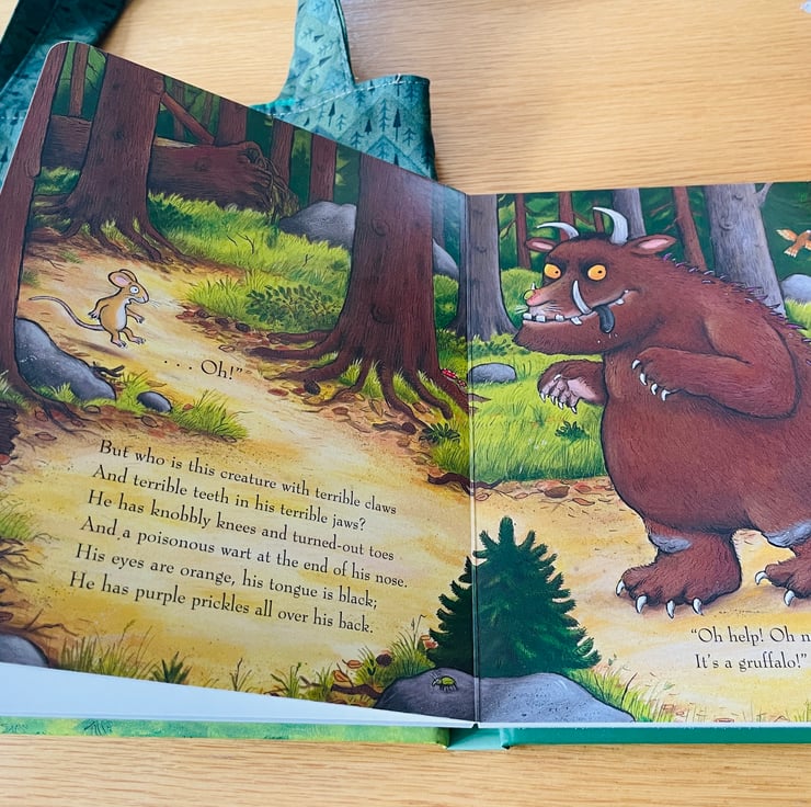 It is perfect for holding the board book and the soft toy Gruffalo character.