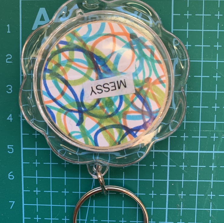 The inspiration for this keyring is from a song from the recent charts about a girl's struggle with her over critical mother who gives nothing but mixed messages, often contradicting and opposing, never a middle ground or praise. I just love the song and the artist. It's Messy by Lola Young.