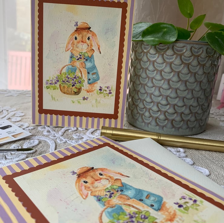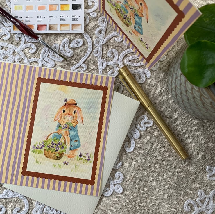 This A6 card features my original hand-painted watercolour bunny illustration, reproduced as a high-quality art card.