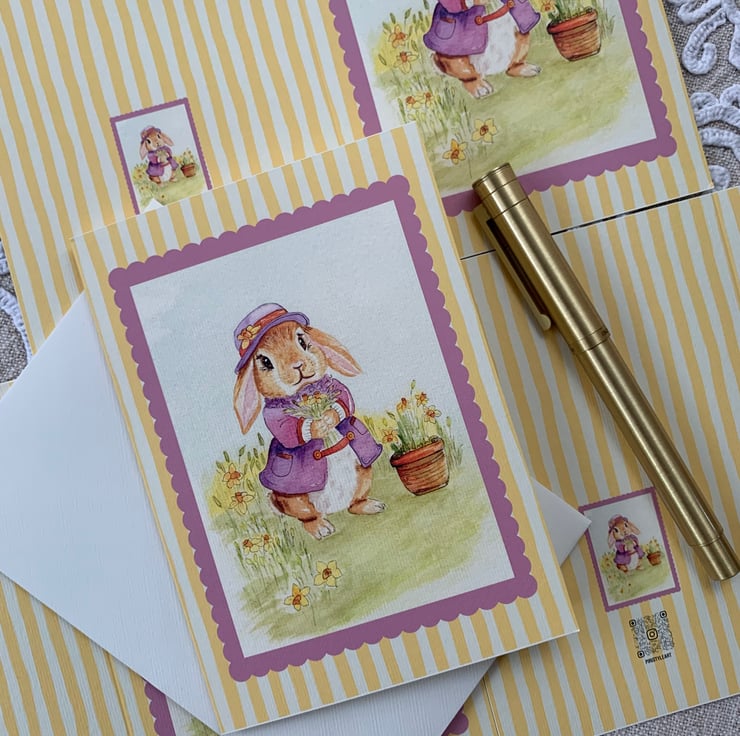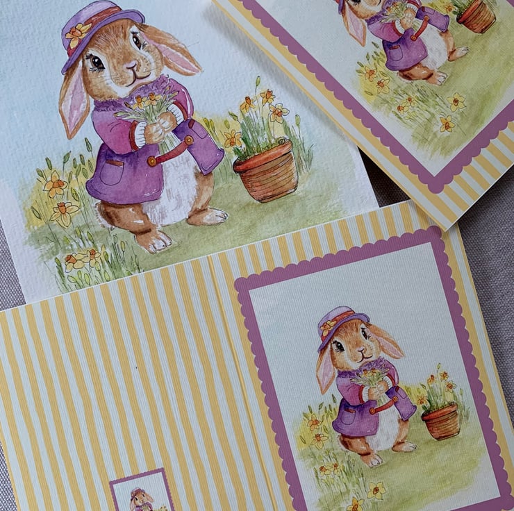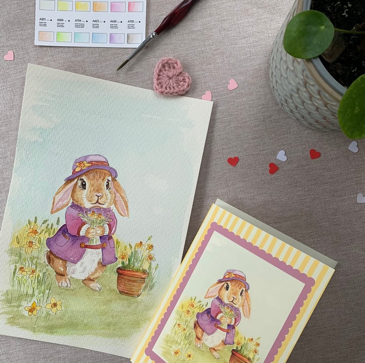 This A6 card features my original hand-painted watercolour lop rabbit illustration, reproduced as a high-quality art card.