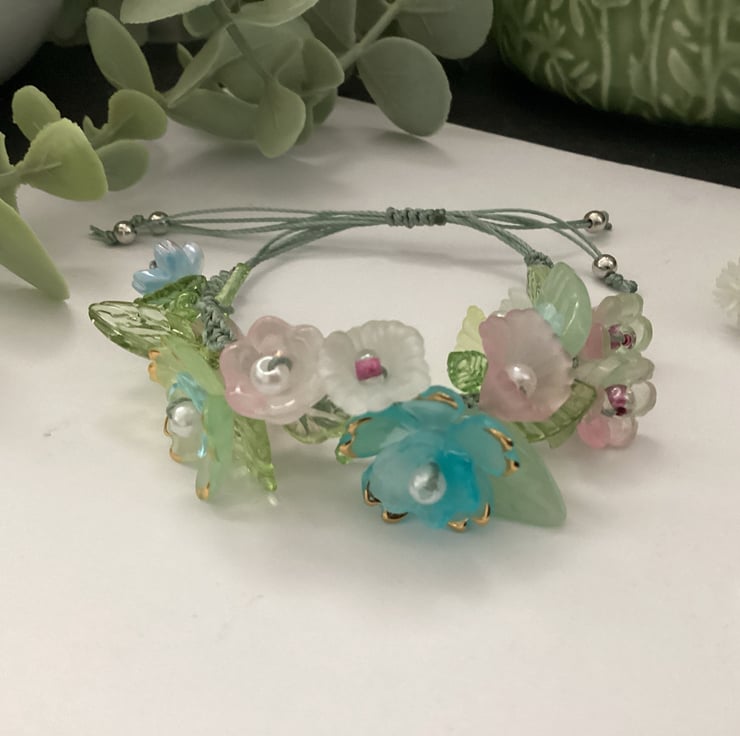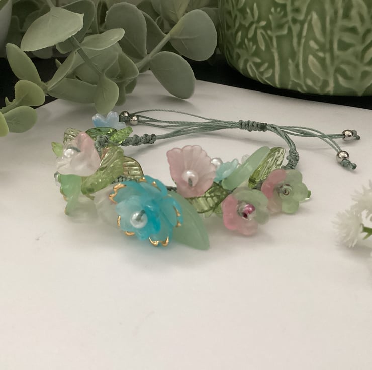 Pretty floral beaded bracelet, summer accessories, gift teen girl, bridesmaid