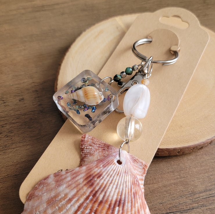 Made with broken jewellery, resin , stainless steel jump rings/pins, and shells.
