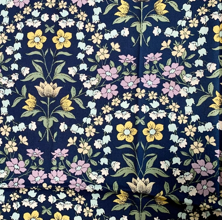 Cottage Retro Blue Floral fabric 70s 60s similar To Albeck Daisy chain.