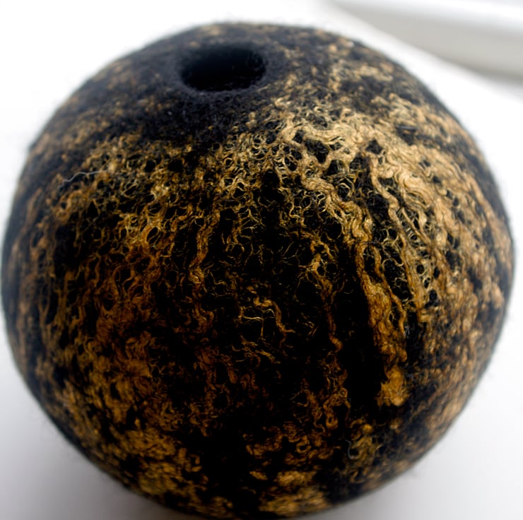 I have been creating these wet felted bowls in various shapes and sizes for fifteen years. They have gone to new homes all over the world.