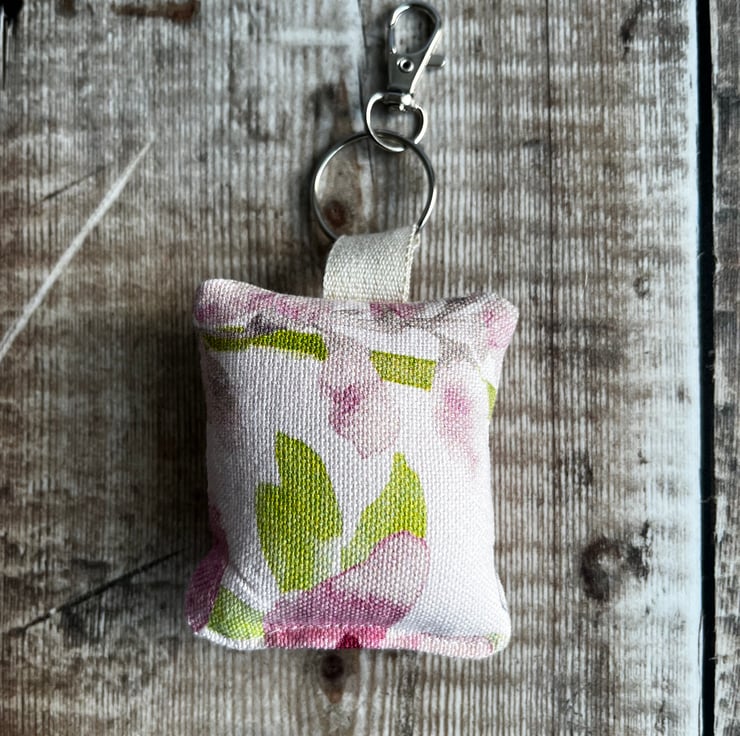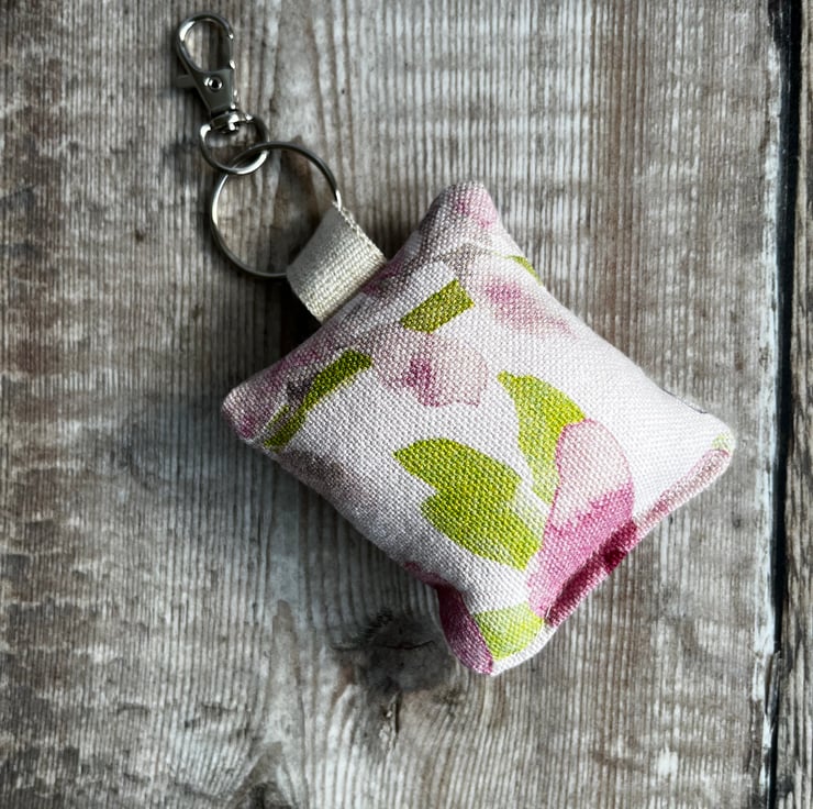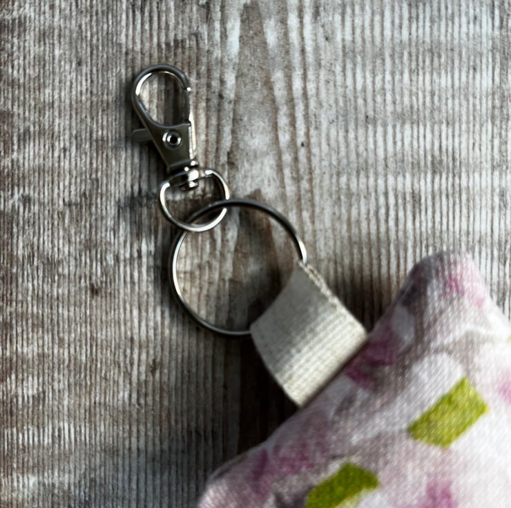 These square fabric pillow keyrings are super spongy and easy to find in your bag. They come with a clasp so you can easily attach them to your bag or purse.
