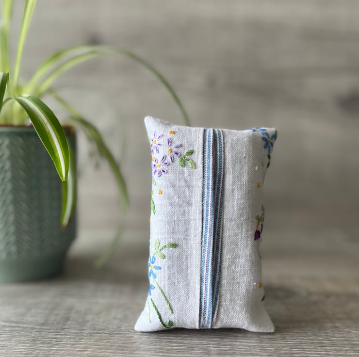 Made with repurposed vintage table linen. I have shown the back of the holder first as the embroidery is so lovely!