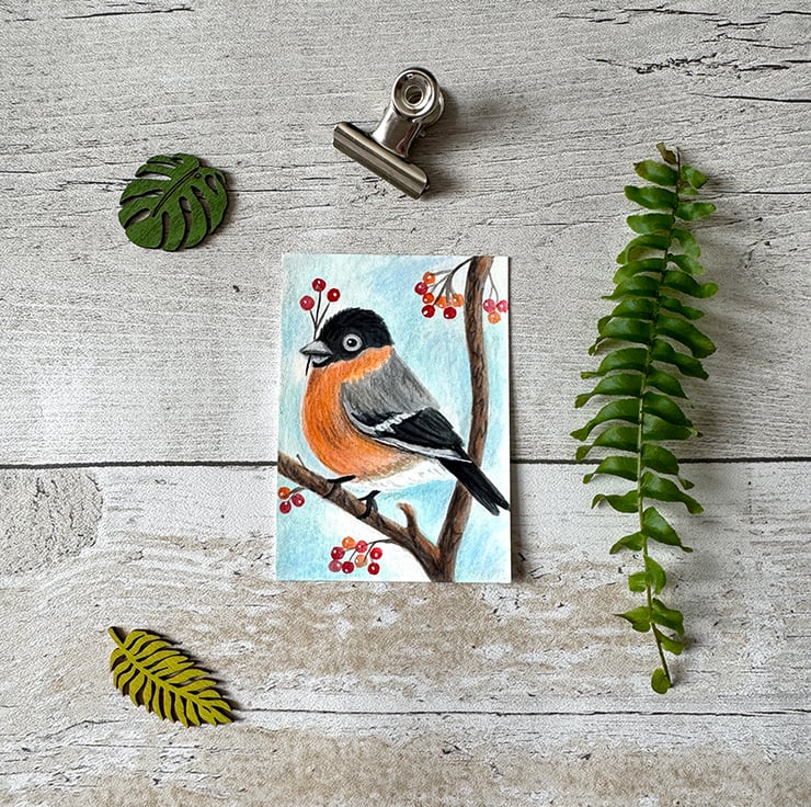 - A sweet small painting that would make a perfect gift for those bullfinch bird lovers!