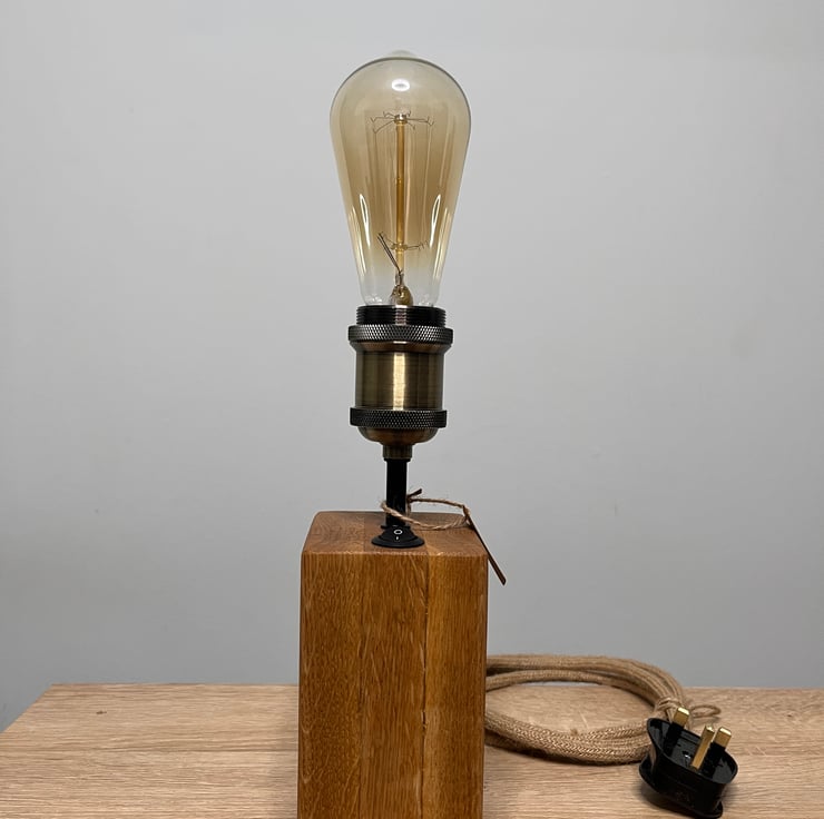 Handmade Solid Oak Block Lamp with Edison Bulb