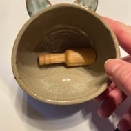 This novelty salt pig complete with ears & tail ! I made this on the wheel then hand finished and glazed it in a beautiful fjord blue with cream inside , it would look great on anybody’s kitchen worktop.