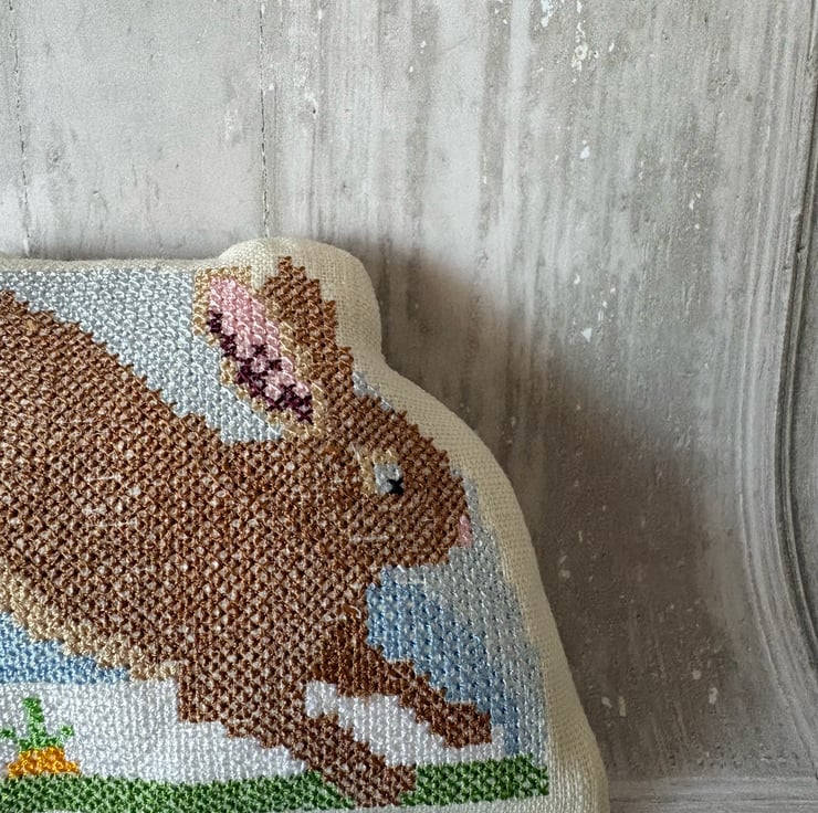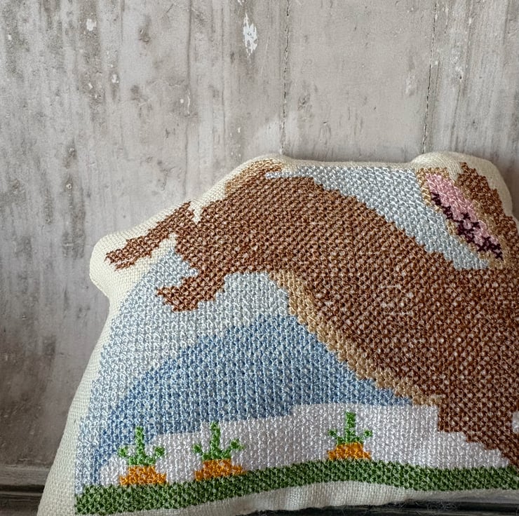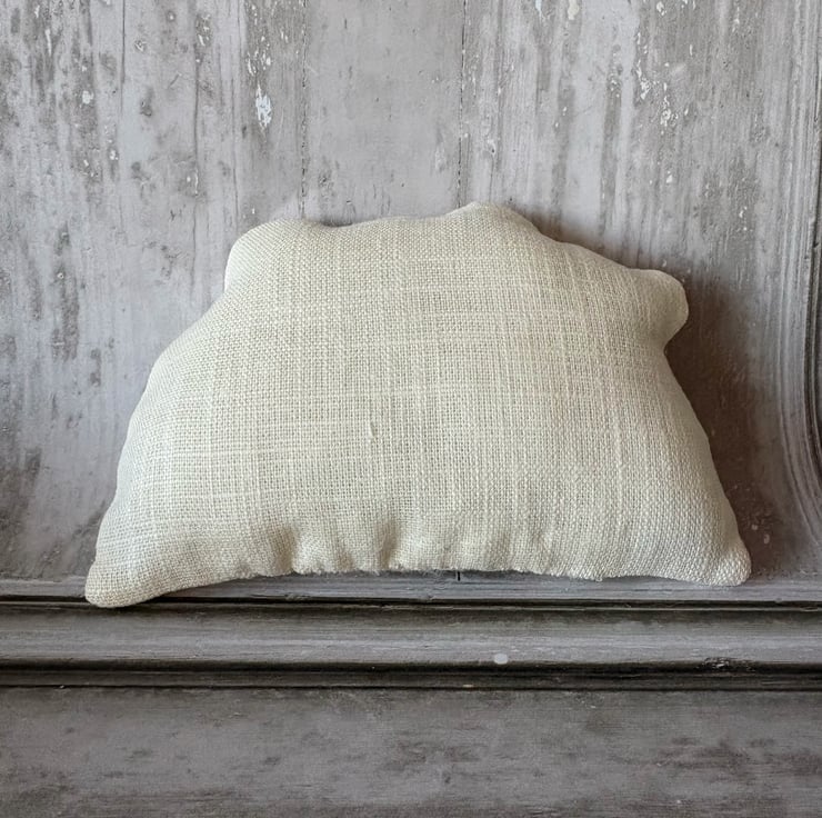 Bowl Filler machine embroidered cross stitch design. Measuring 5.5" x 3.75". Perfectly Pale prewashed linen fabric filled with polyester fibrefill. Little pillows of fun. Select 1 or fill a bowl full of Spring colours.
