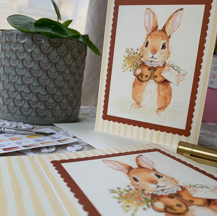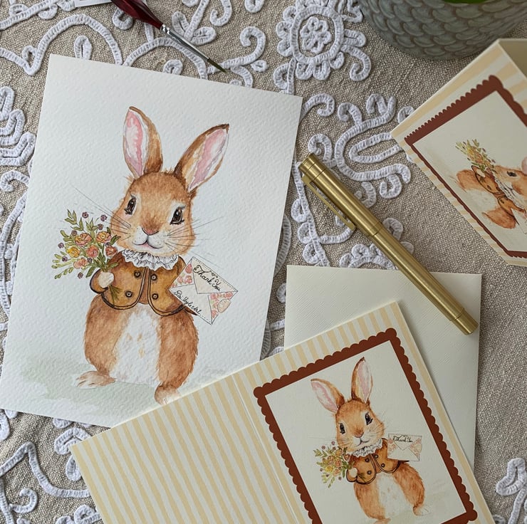 This Thank You card features my original hand-painted watercolour bunny illustration, reproduced as a high-quality art card and is a favourite of many.