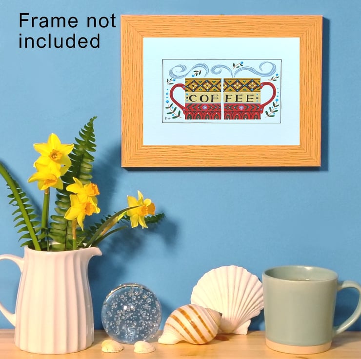 Coffee mugs folk art painting, A5 acrylic original artwork, unique gift