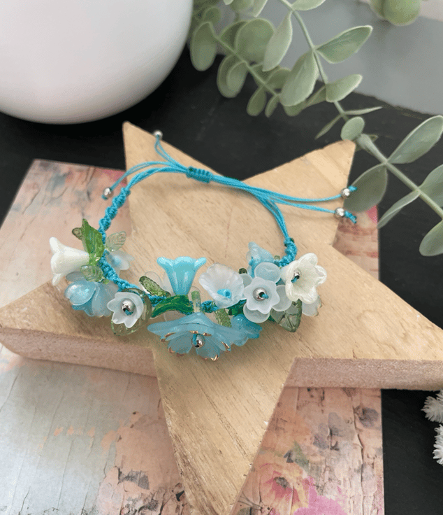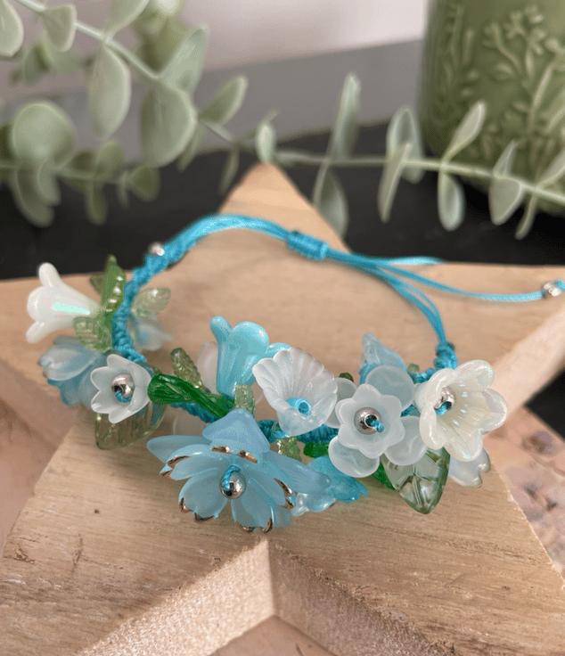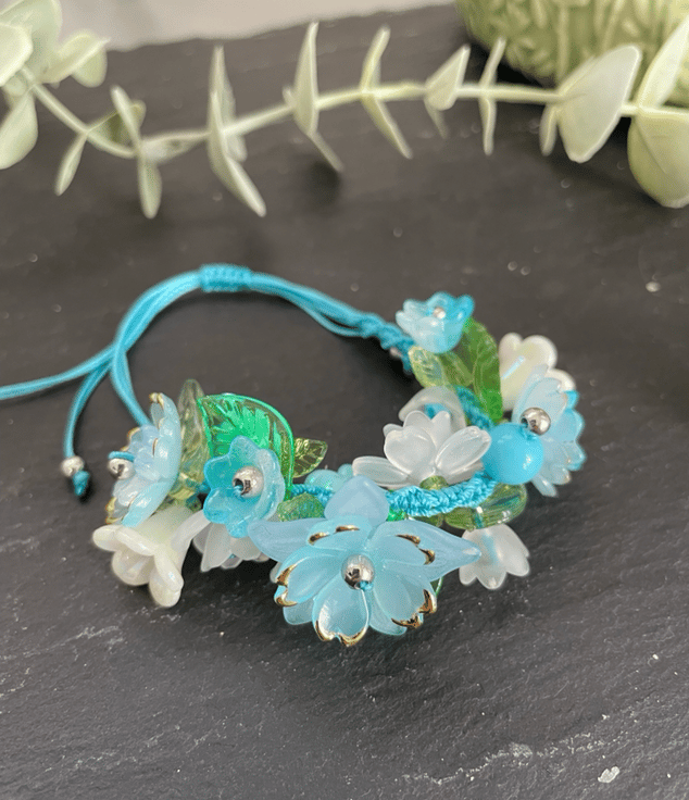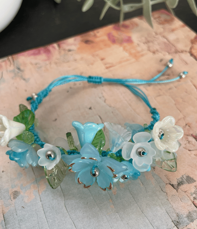 Delicate, feminine, and effortlessly charming this Pretty Floral Summer Garden Beaded Bracelet is the perfect accessory to brighten any look. Featuring beautifully arranged lucite flower and leaf beads together with Czech glass beads, this bracelet adds a soft touch of elegance and color to your everyday style.