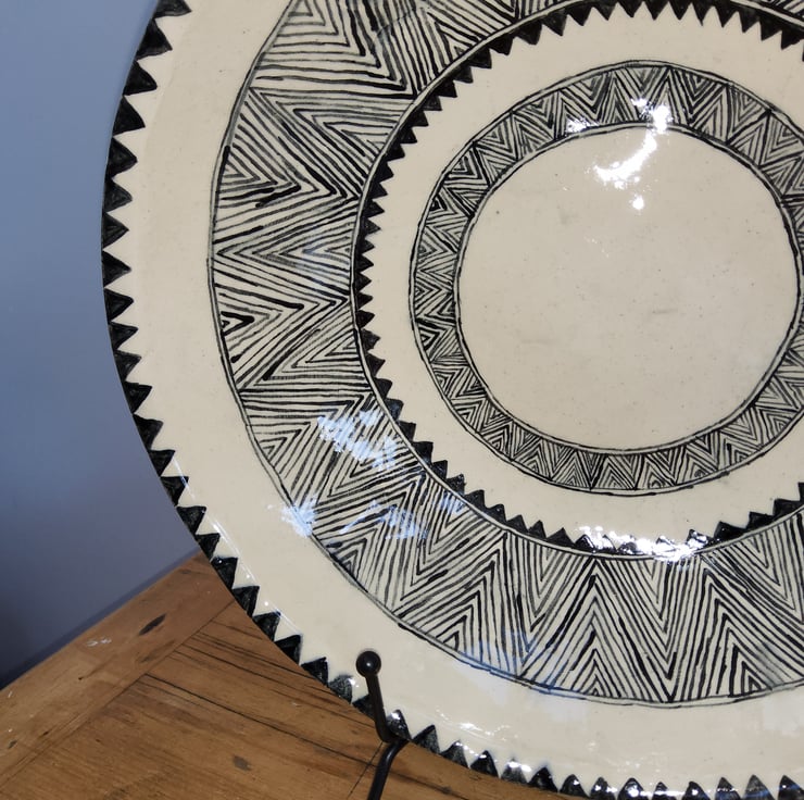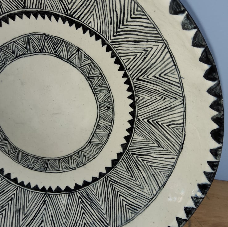 Beautiful bowl handmade and handpainted by me in my design Indus. The black on white colour fits in with any decor really well. Approx 27cm across