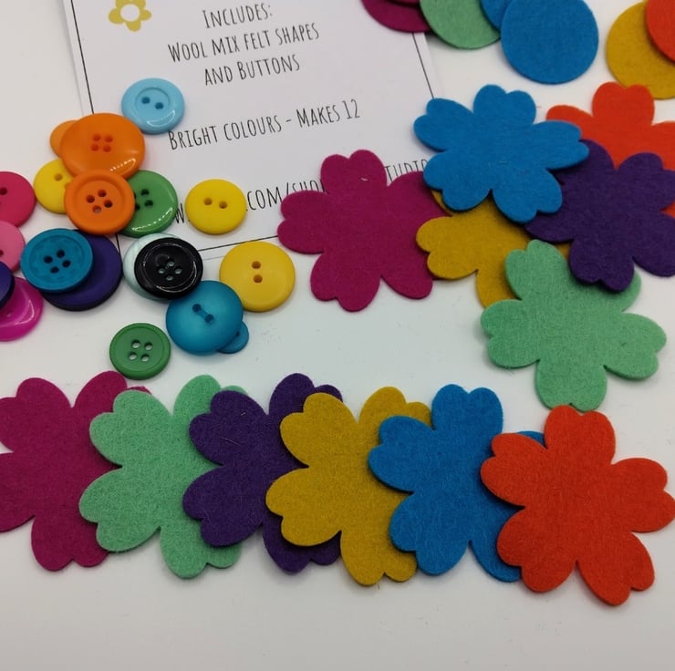 These kits contain : wool mix felt shapes and a selection of buttons.