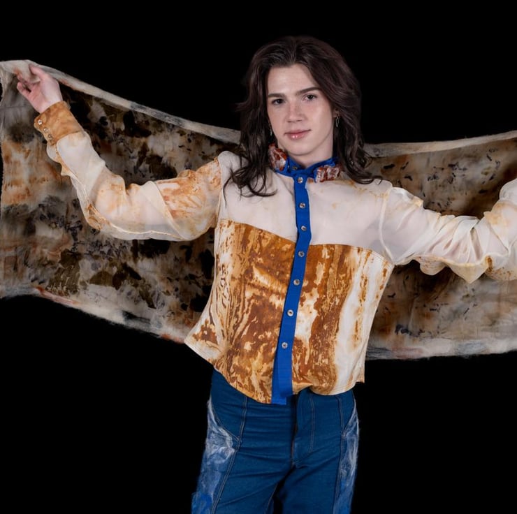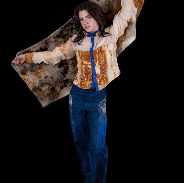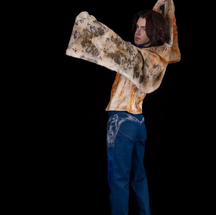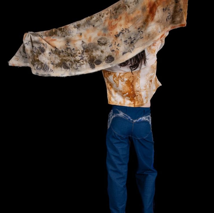 It is part of collection visible in the pictures inspired by textiles from the sunken ship found in Texel Netherlands , after being submerged for over 350 years. I was drawn to the idea of trace and story that the garment is caring. This is fully a story of British wool and locally found rusty objects, plants ... their collaboration into something new a new tale to be continued by you, by your scent, your sophisticated everyday.