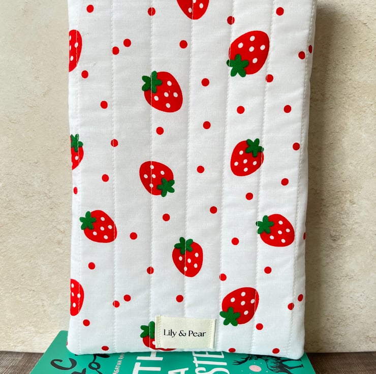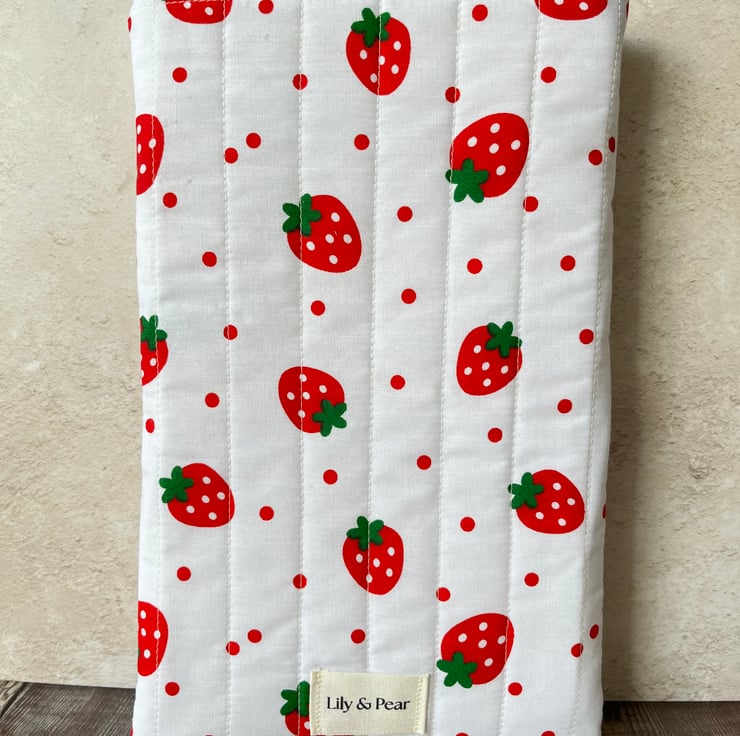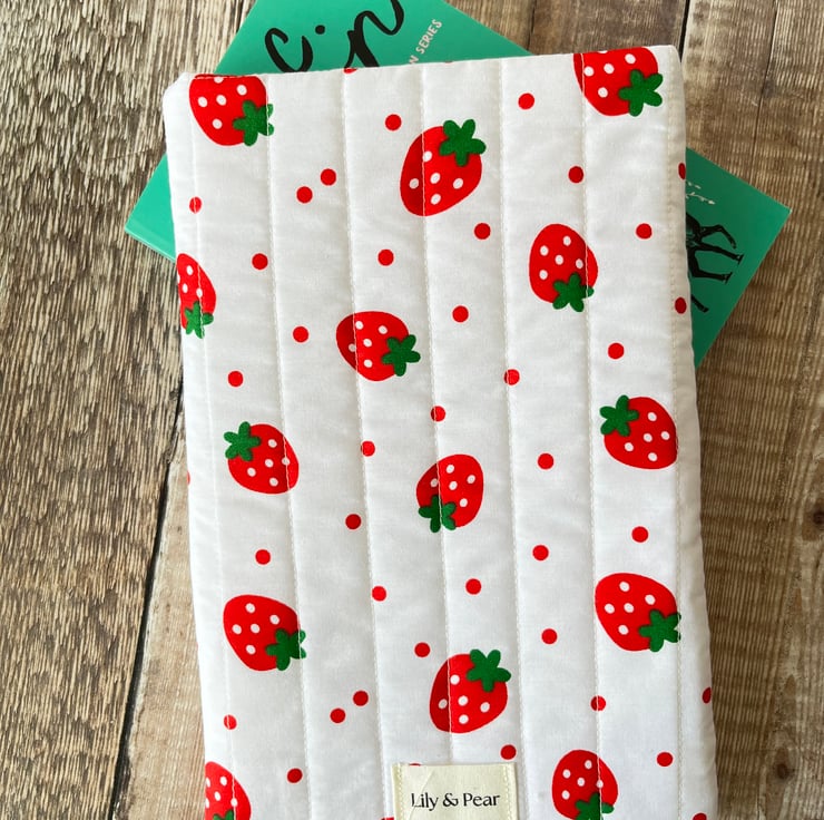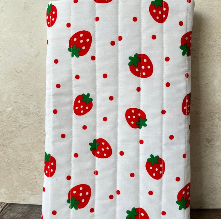 Strawberry Quilted Fabric Book Sleeve