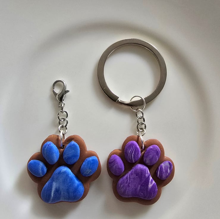 Cute purple marble paw print with the option to have as a bag charm or keyring - just select the relevant option! Lovingly made with polymer clay.