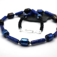 The necklace fastens with a handmade sterling silver hook.
