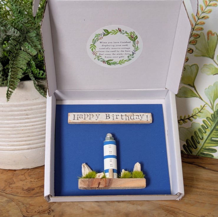 Once you have finished displaying the card, the lighthouse scene and wooden message can be removed and kept as a decorative ornament.