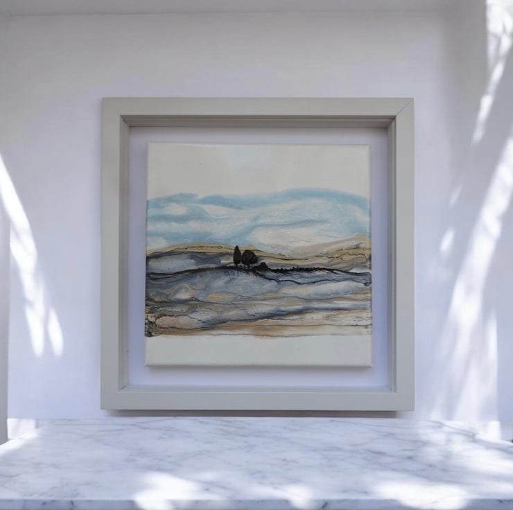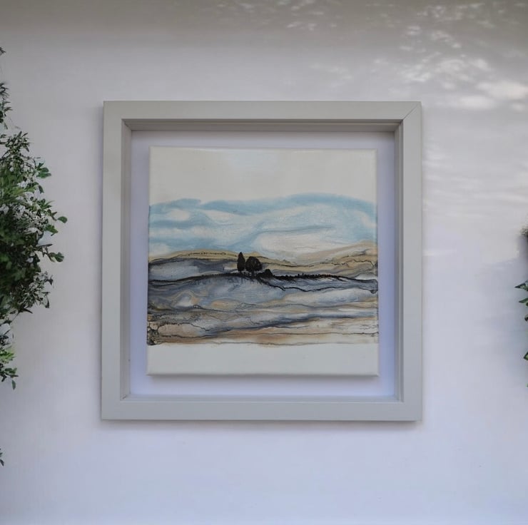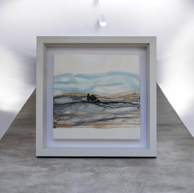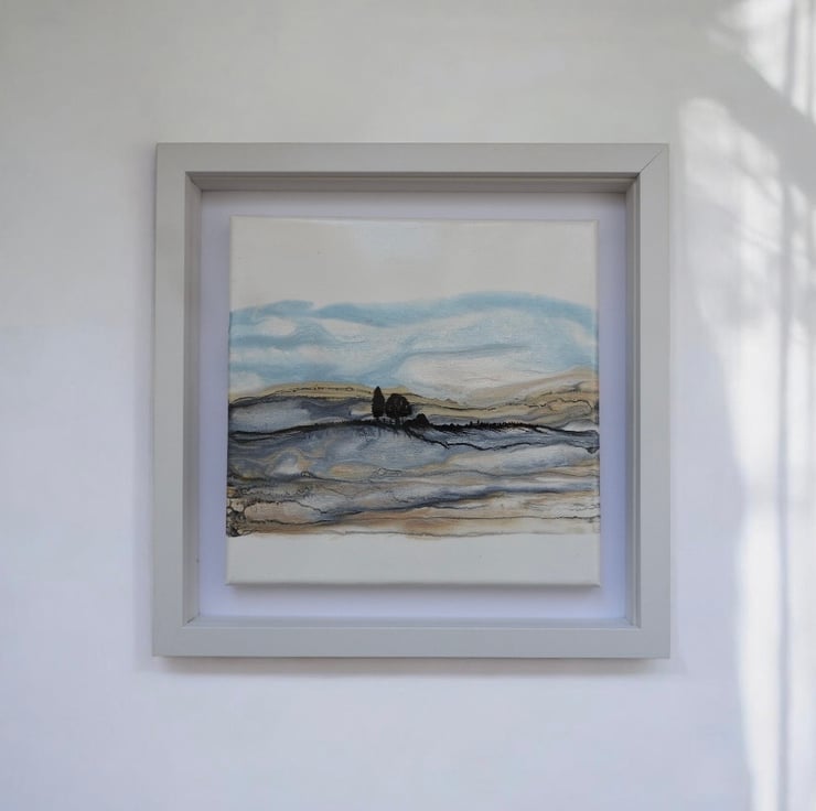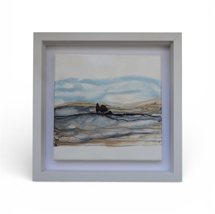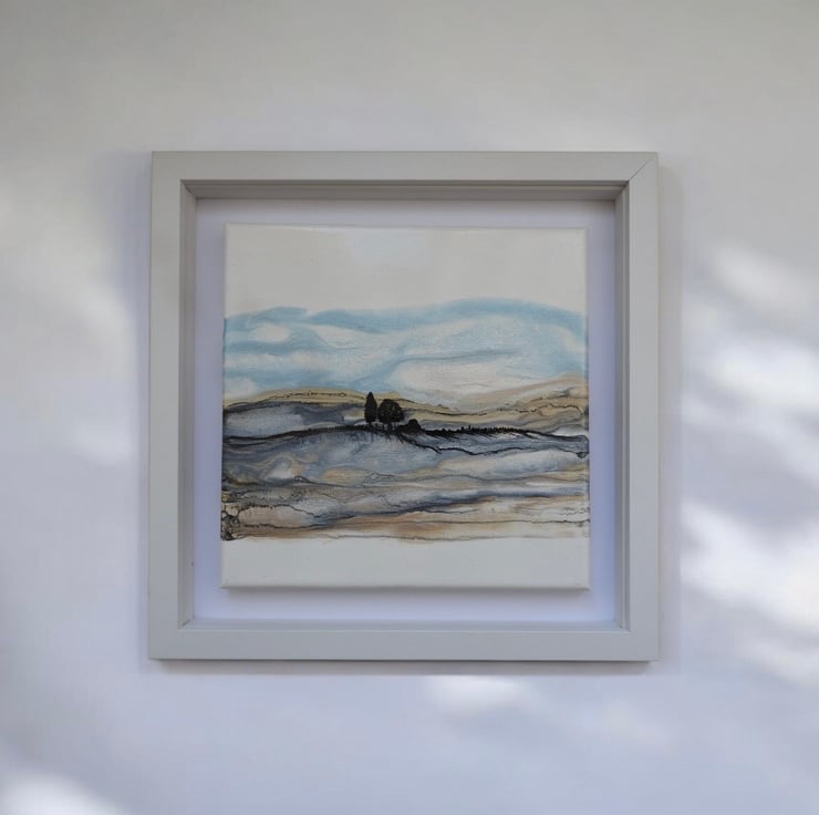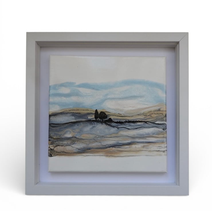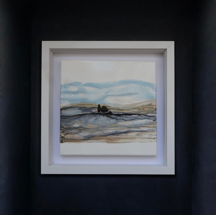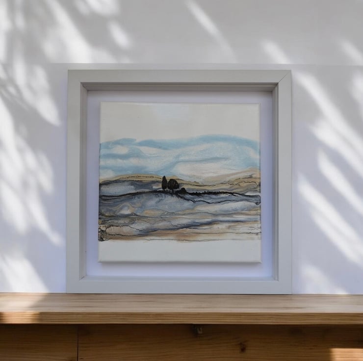 Depicting Northumberland hills series , in shimmering golds and blues silver shimmering fields as winter tumbles in , this is my favourite.